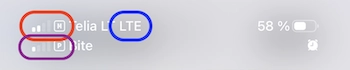 The picture below proves that you are really using MoreMins eSIM mobile internet. The symbols: M for MoreMins; Telia LT or any other name means local network provider which is MoreMins partner; LTE - active mobile internet symbol.