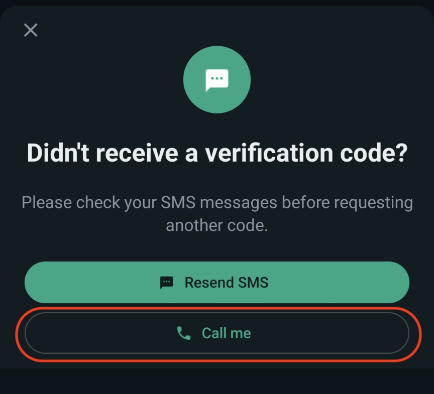 If you do not receive SMS from WhatsApp on the registration page, first try clicking the Didn't receive code? and then Resend SMS button.
