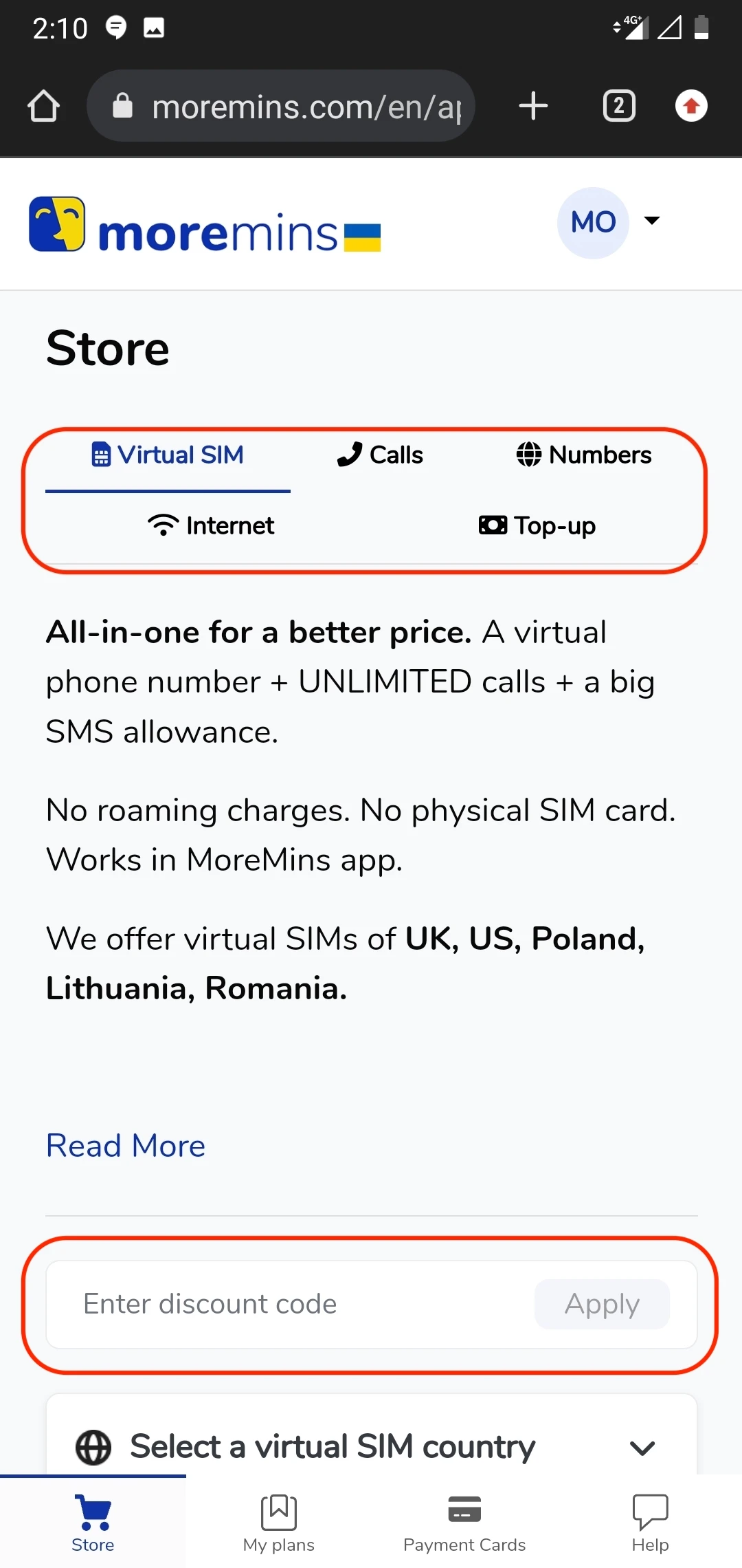 Download MoreMins app for iPhones and for Androids if you would like to use virtual numbers, virtual SIM cards or make cheap international calls and SMS.