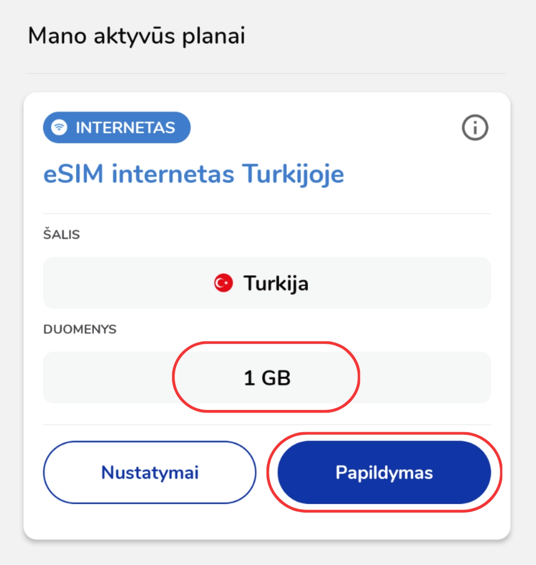 Žemiau pateikiama išsami instrukcija. Patariame įdiegti eSIM internetą likus dienai iki kelionės.