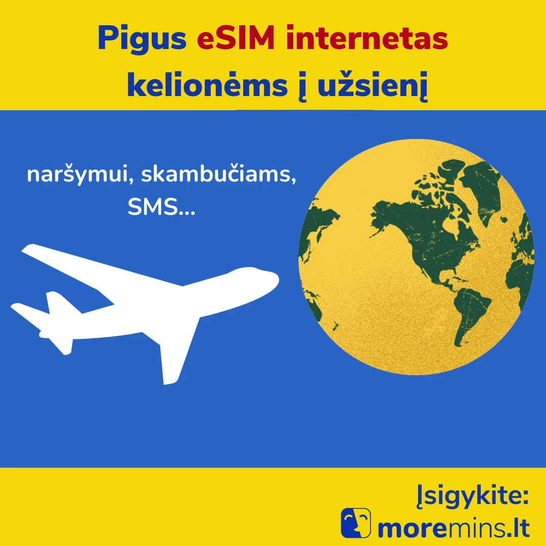 eSIM internetą kelionėms teikia nemažai kompanijų. Viena jų - MoreMins.