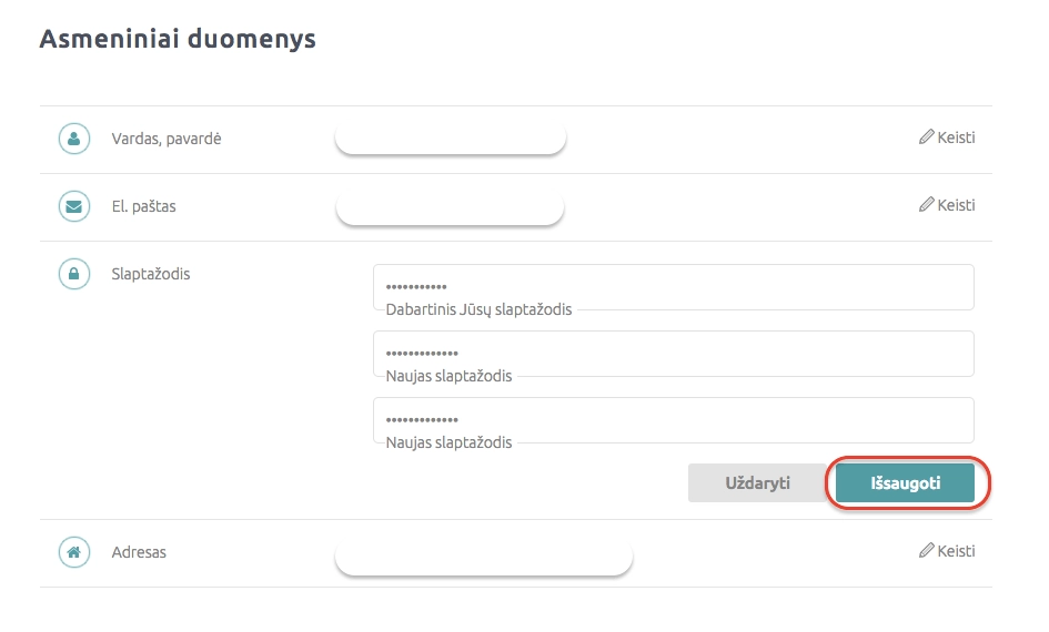 Tereikia prisijungti prie MOREmins paskyros ir nueiti į skiltį “Asmeniniai duomenys ir nustatymai”.