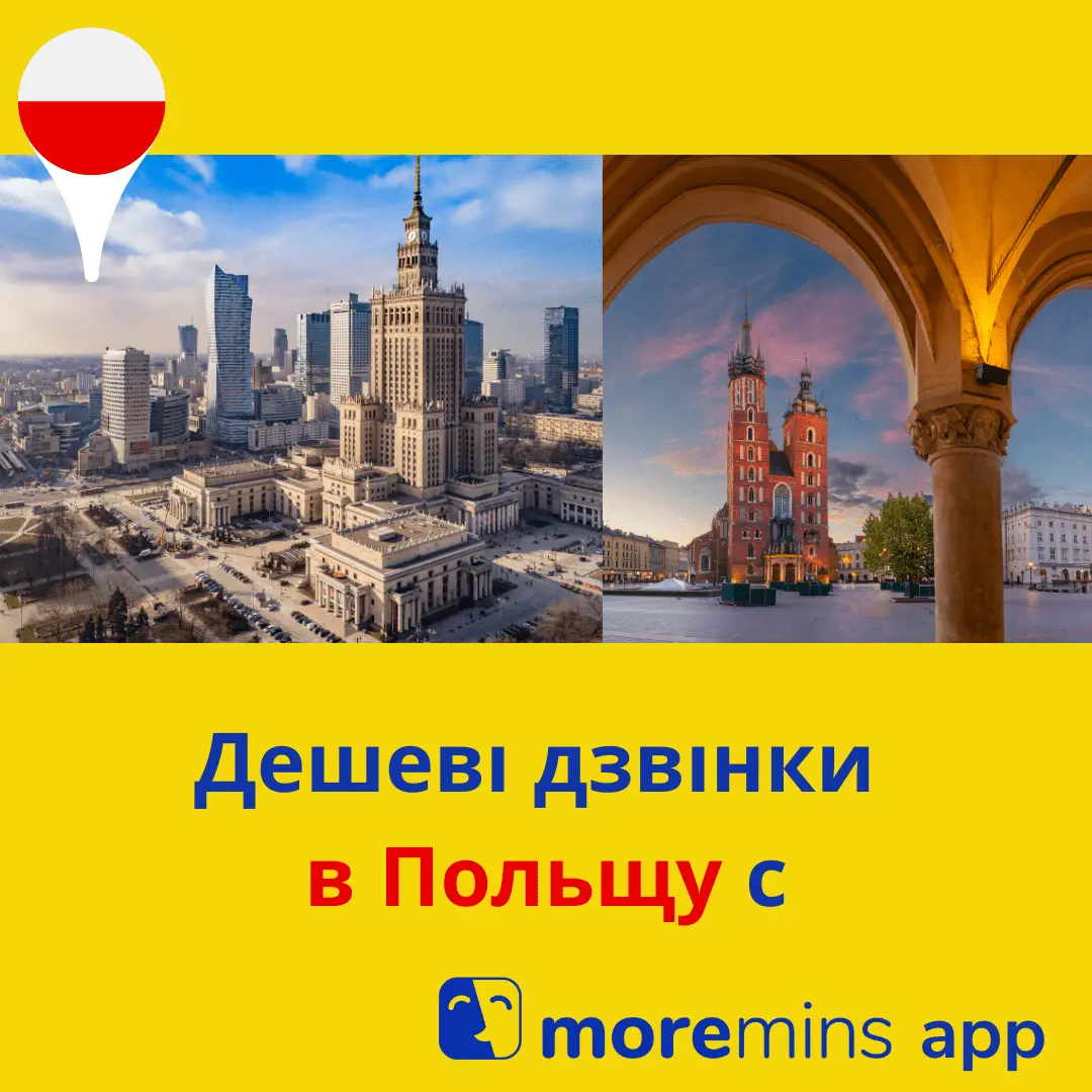 Дешеві дзвінки на польські стаціонарні та мобільні з-за кордону. Телефонуйте за допомогою програми MoreMins.