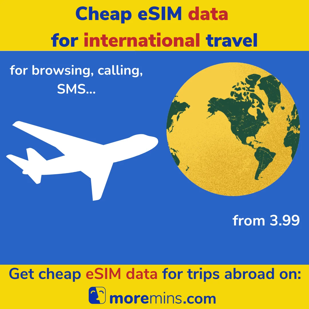 11. Use eSIM data for calling to landlines or mobiles and texting to mobiles via MoreMins app. MoreMins provides cheap local and international calls and SMS.