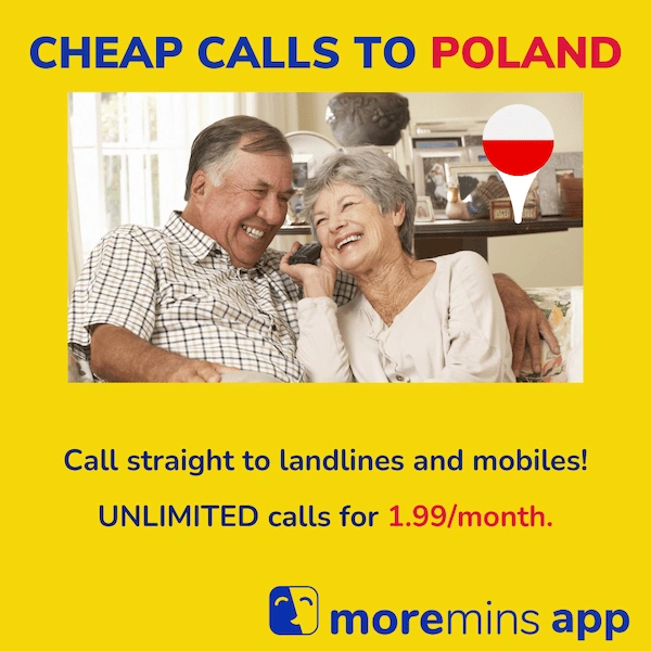 Call straight to Polish landlines and mobiles from abroad. MoreMins app can call without internet.