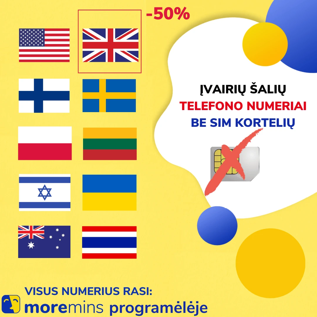 Telefono numerį, veikiantį be SIM kortelės, rasi MoreMins programėlėje. Į jį skambinti iš Lietuvos nieko nekainuos. O Jūs atsiliepsite taip pat nemokamai. Išeinantys skambučiai ir žinutės jums kainuos nedaug, nes MoreMins yra ir pigių tarptautinių pokalbių tiekėjas.
