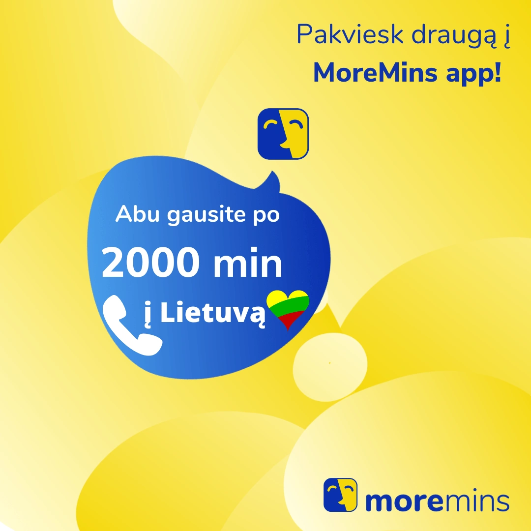 Pakviesk į MoreMins programėlę draugą ir abu skambinsite į Lietuvą nemokamai!