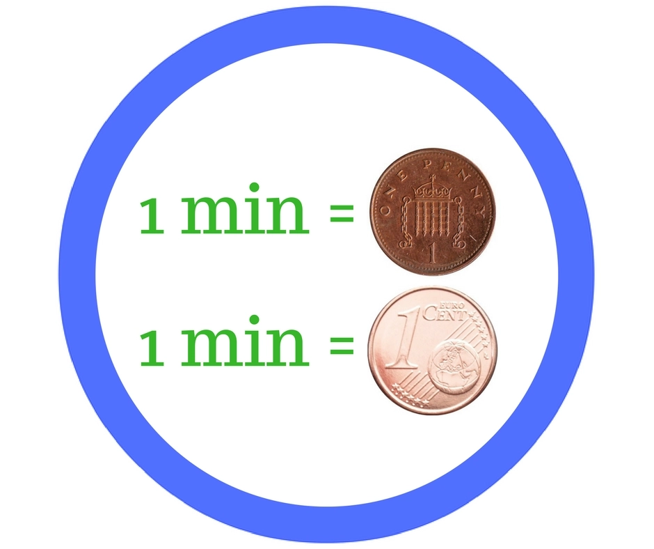 Jeigu iškalbėsite visas 2000 paketo minučių, minutės kaina bus tiesiog juokinga – penktadalis penso arba penktadalis euro cento (su 1 pensu galėsite kalbėti 5 minutes arba su 1 euro centu galėsite kalbėti 5 minutes).