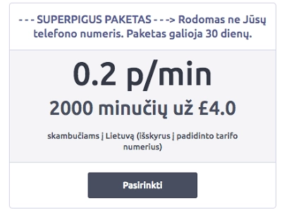 Su šiuo paketu minutės kaina siekia vos penktadalį penso - 0,2 p/min!
