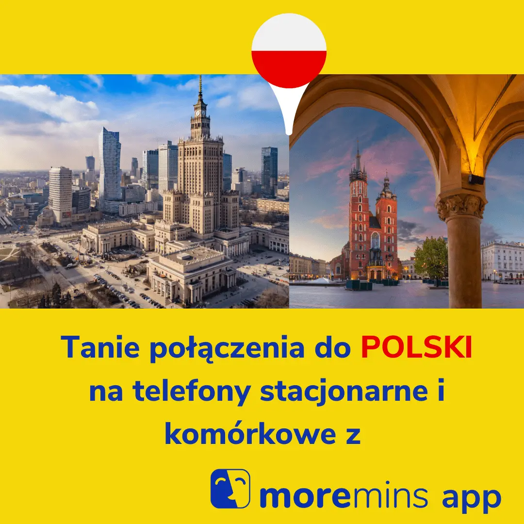 Tanie rozmowy na polskie numery stacjonarne i komórkowe z zagranicy. Dzwoń bez internetu dzięki aplikacji MoreMins. Połączenia za mniej niż 1 p/min (mniej niż 1 c/min) z Supertanim pakietem połączeń.