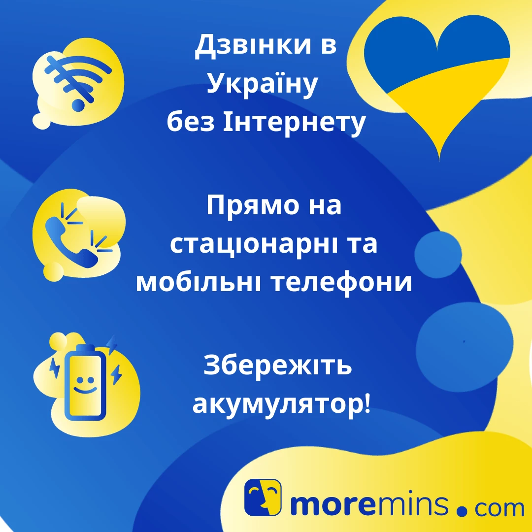 Будь завжди поруч з друзями та рідними в Україні. Встанови мобільний додаток MoreMins та отримай безлімітні хвилини на цілий місяць усього за 10 злотих!