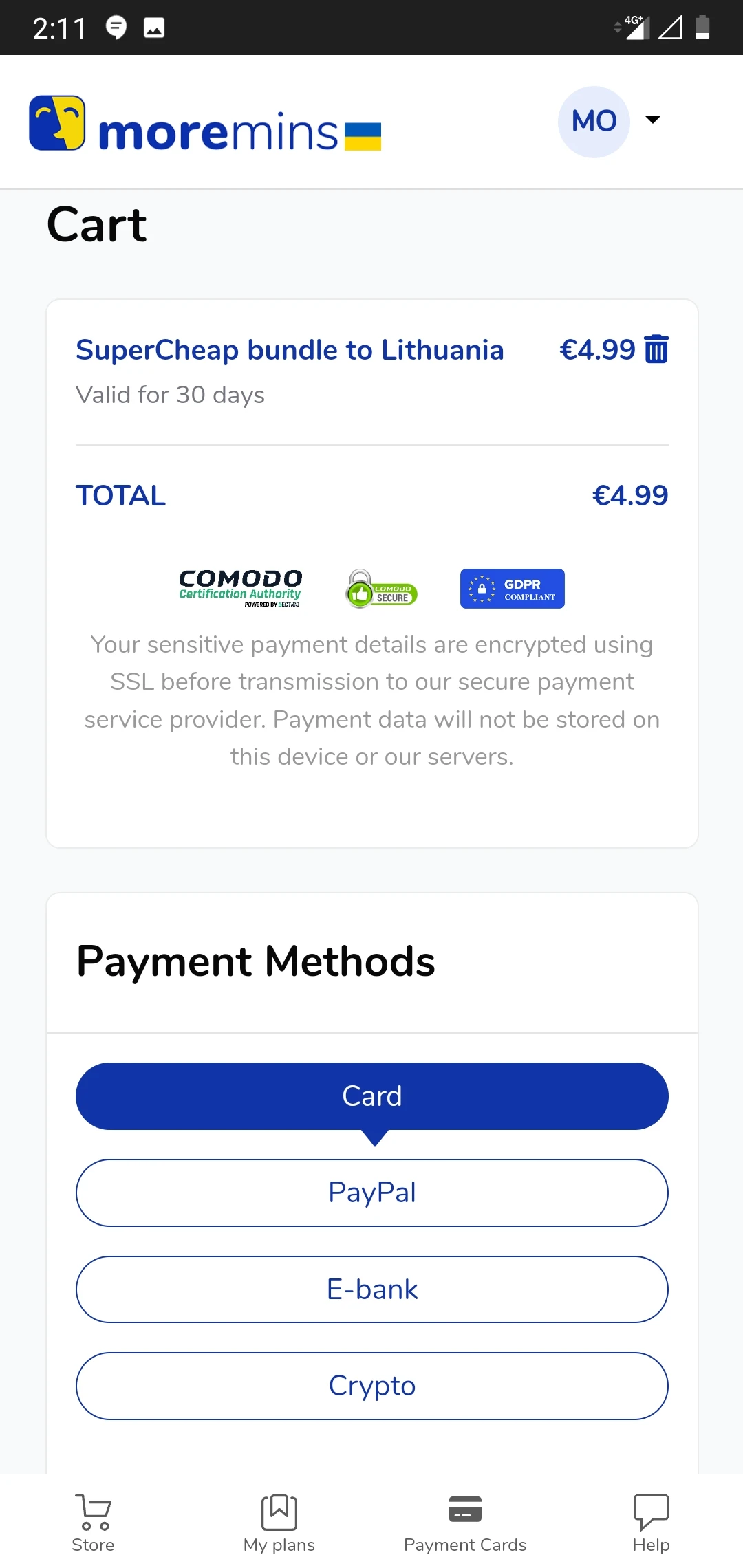 5. Тепер у вас буде можливість переглянути свій кошик. Відображена ціна є остаточною. Якщо замовлення правильне, оберіть найзручніший спосіб завершити оплату.