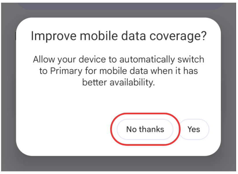 7. У вікні "Покращити покриття мобільного зв'язку?" натисніть "Ні, дякую".